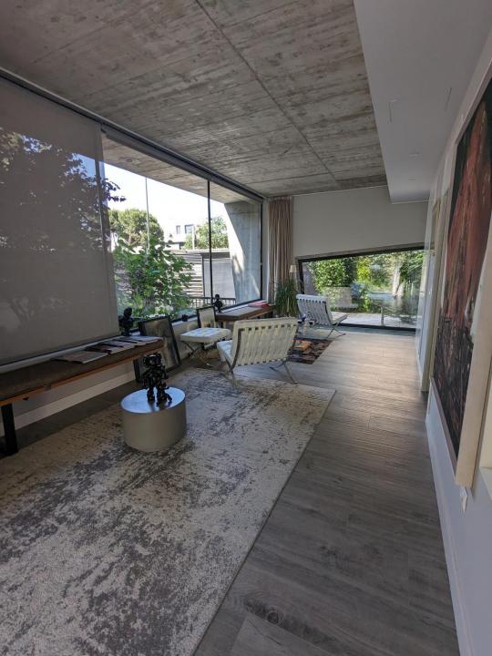 Con 500 m² y una parcela de 511 m², construido íntegramente en hormigón armado, este chalet destaca por su arquitectura de líneas limpias y minimalistas, diseñada para potenciar la luz natural y la amplitud del espacio. La casa cuenta con acabados de alta gama, con 4 habitaciones, 4 baños, dos salones con chimeneas únicas (una de ellas expuesta en el MoMA de Nueva York), terraza, jardín privado, piscina exclusiva, aire acondicionado, calefacción individual y garaje incluido. Se trata de una vivienda moderna, luminosa y con una estética arquitectónica de vanguardia.