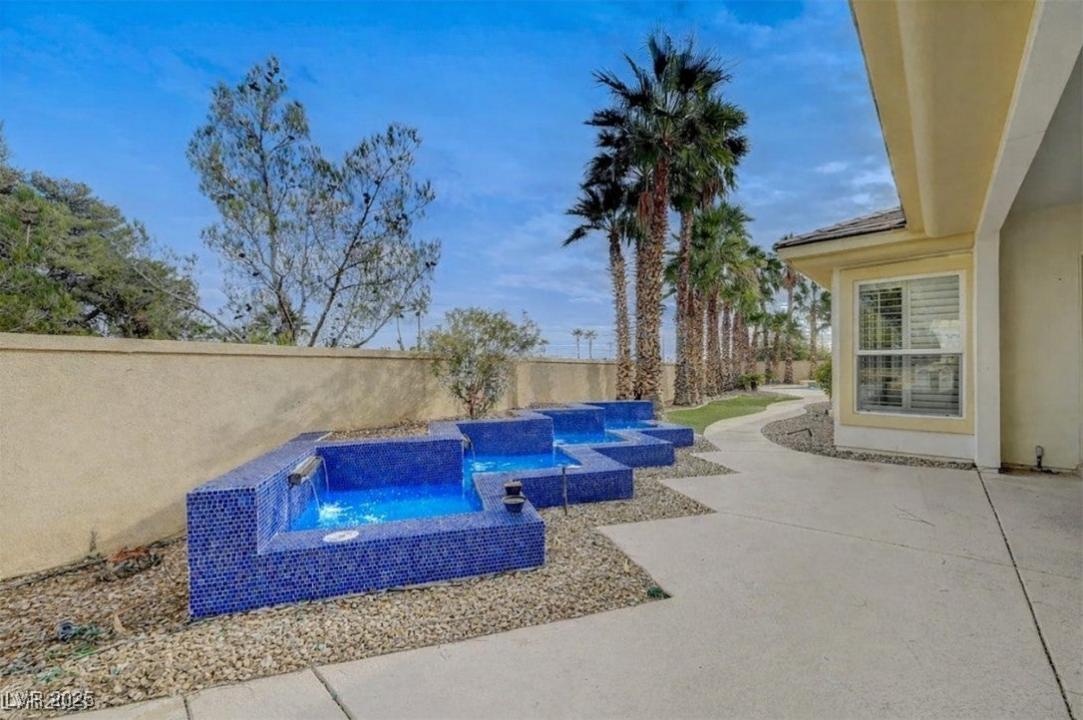 Attention Buyers! Welcome to this Stunning Gem with 4 4-bed, 5-bath single-story luxury home with 4,482 sq. ft. of living space on a 14,810 sqft. in a gated cul-de-sac of 9 custom homes. Features a resort-style backyard with pool, overflow spa, waterfall, fountain, covered patio, built-in BBQ, mature landscaping & fireplace. Grand foyer double door entrance with high ceilings & crystal chandelier. Formal living & dining area, with a separate family room. New floors, fixtures, California Closets & plantation shutters throughout. Gourmet kitchen with quartz counters, stainless steel appliances, double ovens, oversized island & walk-in pantry. Primary suite with sitting area, 2-way fireplace, soaking tub, custom walk-in shower, his & hers sinks. Freshly painted. Oversized 3-car garage. Move-in ready. Minutes to Downtown Summerlin, the Strip, parks, golf, shopping, dining & more. Luxury Las Vegas living at its finest! 3D tour coming soon.