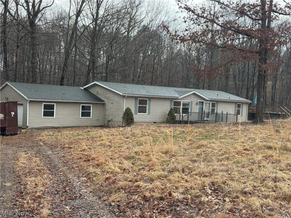 Opportunity awaits with this 3 bedroom, 2 bath double wide on a permanent foundation with an attached two-car garage, set on 5 acres of pasture and woods. Property includes a 25x25 barn with a 10x25 hay loft, making it well-suited for hobby farm or recreational use. Covered back deck overlooks the countryside setting. Bank-owned and in need of repairs—ideal for buyers looking to add value and make it their own. Due to multiple offers, seller has requested highest and best offers be submitted by 4/13 at 9 am.